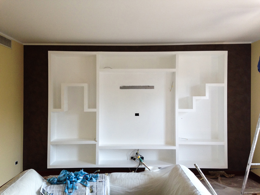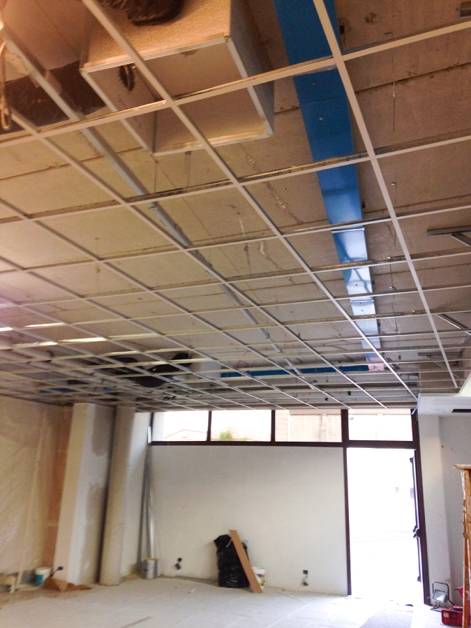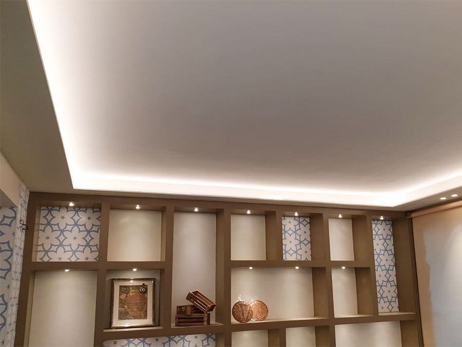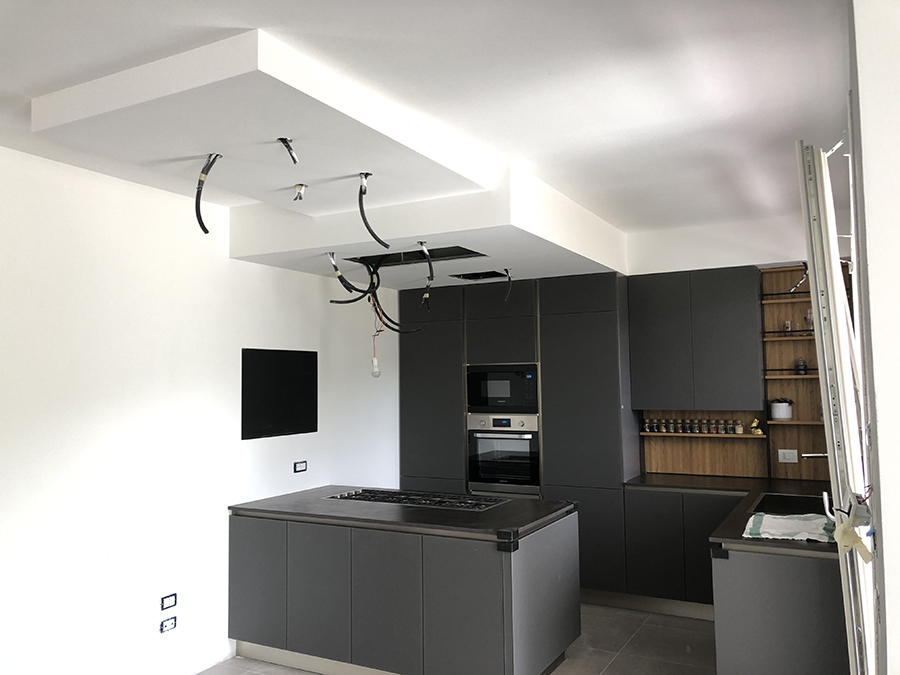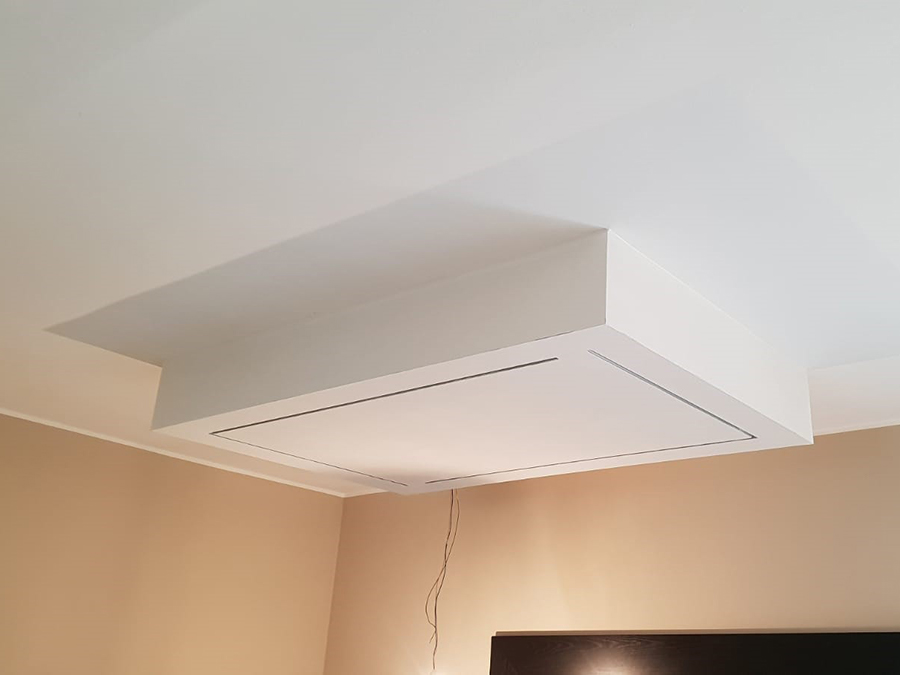 Montaggio controsoffitti e pareti in cartongesso, isolamento termo-acustico di pareti e soffitti, montaggio faretti e collegamento elettrico, montaggio porte a filo muro, certificazione per montaggio cartongesso in classe REI, controsoffitti in fibra minerale e metallici.